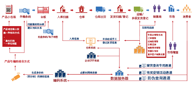 一物一码防窜货管理系统为每个产品赋予一个二维码作为身份标识,将产品的各个环节的数据信息全部注入到二维码中,包括生产流程、仓储管理、物流运输、终端销售等,将产品的信息公开透明的展示给消费者。